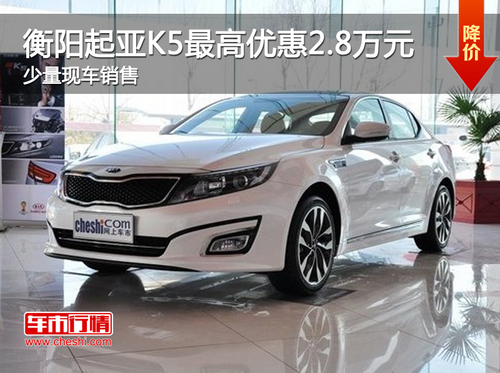 【网上车市衡阳讯】东风悦达起亚新K5除了在外观造型上进行与时俱进的升级外,还新增了全新的2.0T车型。近日,网上车市编辑从东风悦达起亚超强4s店获悉,2014年2月18日—2月28日,起亚K5最高优惠2.8万元。您可拨打衡阳汽车团购24小时热线:18507346768咨询;也可发送短信(内容:姓名、车型、配置、颜色)报名;或加入衡阳购车团QQ群,群号:279772427。