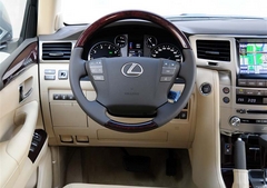 内饰方面:雷克萨斯LX570带有折痕的非洲玫瑰木饰板也更添几分立体的线条,内部的四个显示表呈现矩形排列,将多功能信息显示面板围绕在中间。
