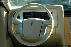 内饰方面:2014款林肯领航员内饰及其奢华,多功能方向盘,全部真皮包裹座椅,内饰采用桃木搭配设计,高贵典雅,加长车身除了增加内部空间外,还给人营造一种尊贵典雅的感官。