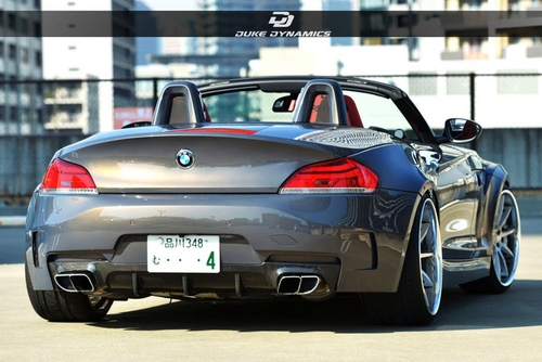 Duke Dynamics改装公司近日推出了针对宝马Z4跑车的全新造型方案,为了给该车型一个更加激进的外观,宽大的车身套件包括新的前保险杠,修改后的侧裙和扩展挡泥板。该改装包还包括一个重新设计的后保险杠,扩散器和通风罩。
