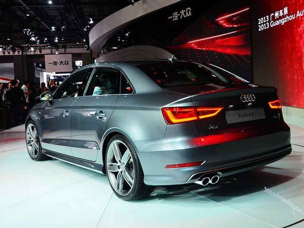 三厢(Sedan)版本A3在 前脸部分的设计非常有奥迪的家族风格,宽大的六边形中网,led的前大灯组,类似于S5的前杠总成,使得整个车头看起来充满了战斗的欲望。整车尺寸,长宽 高分别是4456mm/1796mm/1416mm。车尾部分,侧腰线巧妙的从前贯穿到后,后尾灯组采用了LED光源,后备箱盖有一个类似于‘鸭尾’的小 隆起,可以起到增加下压力的作用。