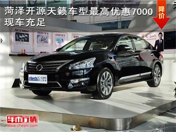 【网上车市菏泽站讯】编辑从菏泽开源4S店获悉,店内天籁现车销售,颜色可选,目前购车部分车型最高优惠7000,感兴趣的朋友可以到店咨询购买.