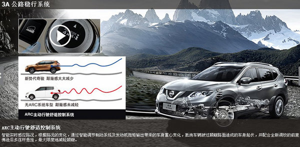 作为一款城市SUV,舒适性也是必不可少的一部分。在以往SUV产品中,公路操控性和驾驶感受都给人一种略显粗糙的印象,但新势代奇骏颠覆了这种传统。新势代奇骏以“3A公路稳行系统”打造了全新的驾驶感和操控性。ARC主动行驶舒适控制系统,有效过滤车身颠簸,提升舒适性能;ATC主动循??刂葡低秤階EB主动发动机制动辅助系统,使新势代奇骏的过弯性能大幅提升。