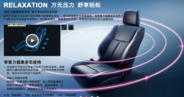 天籁厚实的座椅通过比较特殊的工艺让阻尼变成变量式,刚一坐下就略陷入座椅中,而到一定程度被椅垫中更坚实的填充物支撑住身体,乘坐起来很舒服。驾驶座还支持8向调节功能,长时间驾车也能有效降低驾驶者的疲劳感。