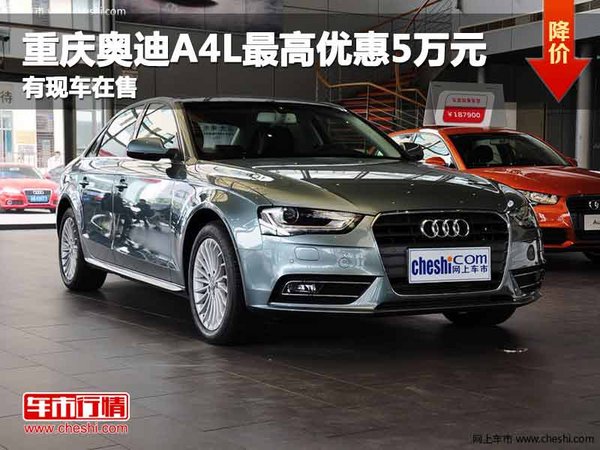 编辑点评:外形大气沉稳,让人百看不厌,2013款外观增加了时尚运动气息,颇得网友喜爱;做工细致,用料扎实,配置丰富,内部空间宽敞舒适,实用性较好,动力不错。目前,重庆地区奥迪A4L有现车在售,购车最高可优惠5万元,对这款车感兴趣的朋友们不妨进一步关注一下。