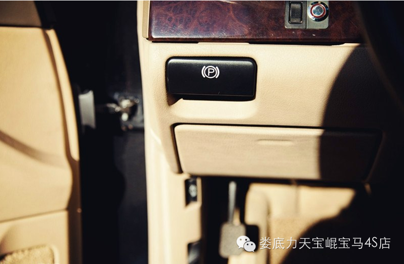 手刹车采用脚踩的方式来实现,如需解除,轻轻拉动"P"即可。