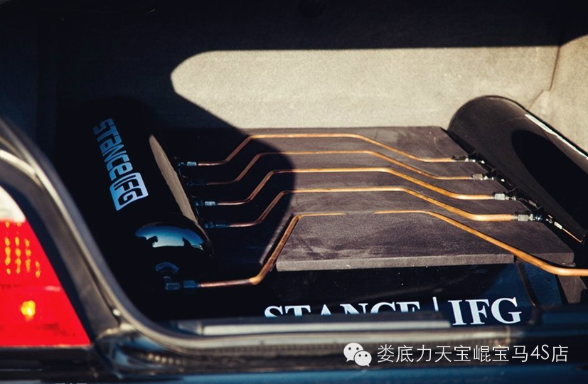 后备厢双罐双泵储气系统,采用铜管硬连接造型,车主对细节的追求,可用完美来形容!