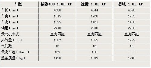 在车身尺寸方面,东风标致408要明显的优于速腾和新思域,2710的轴距长度在同级别车中也是比较少见的,完全可以满足消费者对于车内腿部空间的要求。在动力方面,这三款车型均采用了直列4缸引擎,由于排量的不同,这三款车在最高车速方面的表现也是有所差距。