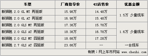 起亚狮跑最高优惠1.6万 现车不全需预订