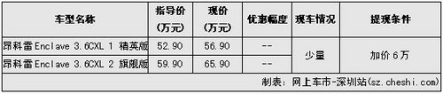 编辑从深圳别克4S店了解到,前段时间一直紧缺的昂科雷车型现有少量现车到店。据店内工作人员讲,由于是年底将到,因此店内暂不提供任何形式的优惠。另外现场提车还需加6万。如果想获得更多优惠的朋友可以联系我们:33002601、23985795