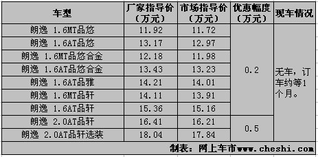 朗逸作为上海大众的主力车型,一向销量甚佳,常常供不应求。近日,记者从深圳上海大众获悉,现购买上海大众朗逸最高可优惠5千元,详情可咨询:23985795、33002601,具体价格见下表:
