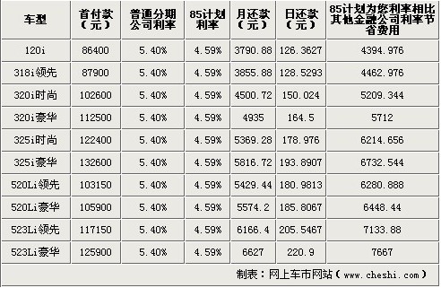诱人的条件不只这两项,沈阳华宝还推出了超惠贷款85计划,自2010年1月至3月31日期间,凡购置BMW 1系、3系、X3指定车型,即可在首付30%基础上,再享央行基准利率85折。若购置BMW 5系全线车型,则首付更低至25%。如果近期有购车意向的朋友可要及时出手了。