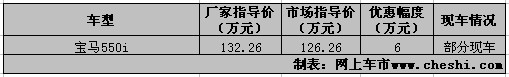 宝马作为一个热销品牌,不仅一向现车不多,优惠更是难求,随着新年的临近,深圳宝马经销商为了回馈广大消费者特推了少量特价车型,宝马550i运动款原价为132.26万,现有6万的价格优惠,对宝马5系钟情的客户不妨抓紧时间,详情可咨询:33002601,具体价格见下表: