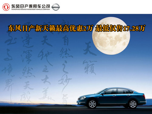 东风日产新天籁现金优惠2万最低仅售17.28万