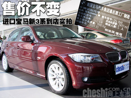由于华晨宝马3系的销量上升太快,产能跟不上,于是宝马从全球海外工厂调配产品资源来缓解供货压力。自今年1月1日起的一段时间里,原本国产的宝马新3系车型以进口身份引入国内,而相同进口车型的售价与国产车型保持一致。以进口身份引入国内的宝马新3系共有三款车型,分别为325i豪华型,320i豪华型以及320i时尚型。据宝和宝马4S店销售人员介绍,宝马3系进口车型的配置与厂家指导价格均与相对应的国产车型完全相同。此外,宝马3系进口车型除包含目前国产3系的所有颜色外,还增加了巴贝拉红和水蓝色两个全新颜色。目前宝马3系三款进口车型均可以接受预定。