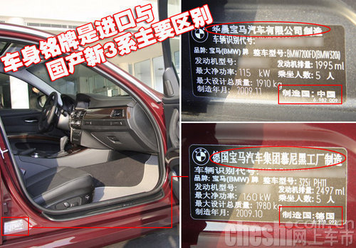 就广大车友关心的“进口与国产宝马3系的区别”,小编请教了石家庄宝和BMW专营店的相关工作人员。宝马新3系进口车型和国产车型最大的区别就是车身铭牌,进口新3系车型是德国宝马汽车集团慕尼黑工厂制造,而国产新3系则是华晨宝马汽车有限公司制造。