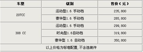 标致308CC MT启售 2010款207CC 23.58万元起