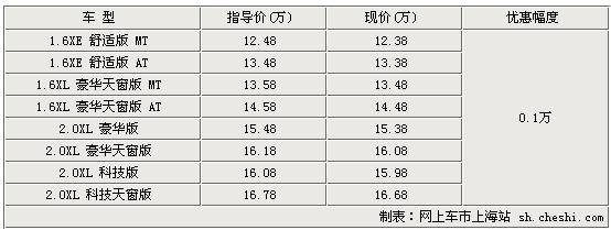 东风日产在继承老款轩逸优势的基础上,对这款新车的外观、配置等方面进行了升级。新轩逸不仅车身增加了50mm,而且前进气格栅也经过了重新的设计,酷似新一代天籁。另外,新轩逸车型(除入门级1.6EX舒适版外)均配备了自动开闭前大灯,保证了消费者在行驶时的安全性。据网上车市价格监测显示, 日产轩逸现降价优惠1000元,最低仅售12.38万,具体价格见下表: