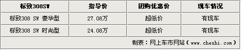 正月十五 我们团购标致308SW去!现在只要报名参加我们的团购会,即可享受到绝对全沈阳市最低价,本次团购的车型为进口标致308SW(七座),优惠幅度绝对超出您的想象!