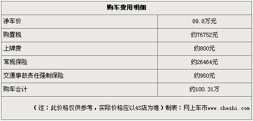 以2010款 3.0TDV6 HSE 柴油版为例,第一年新车保险费用大约为26464元,购置税约76752元,全包价费用约100.31万元。具体费用见下表: