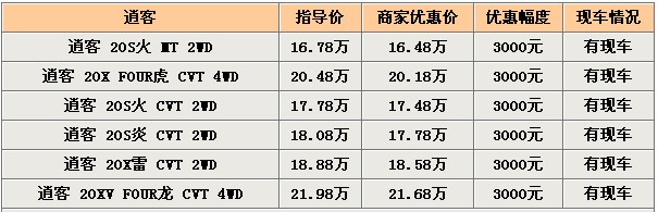 近日,网上车市武汉站编辑走访东风日产4S店了解到,逍客全系车型优惠3000元,对于想买此款车的朋友可以到经销商处咨询一下,具体价格如下表: