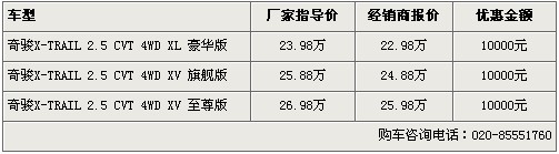 新奇骏国产是因为看到东本CR-V的热销,但是国产后新奇骏的销量却并不理想,在SUV销量榜上不单被CR-V抛得远远的,甚至还不如后来上市的丰田RAV4。近日,编者从广州地区东风日产经销商处获悉,新奇骏现在优惠现金10000元并赠送大礼包,到店想详谈还可能争取更大的优惠。