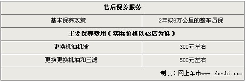 奇骏整车质保为两年或6万公里,每隔5000公里做一次小保养(更换机油,机滤),包含工时费的价格为280元左右;每隔10000公里做一次大保养(更换机油,机滤,空滤,汽滤),包含工时费的价格为600元左右。保养费用在合资品牌SUV中还是比较便宜的。