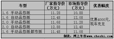 上海大众自主研发的首款A级车LAVIDA朗逸,在2008年北京车展上成为了众多媒体和消费者追捧的对象。近日,网上车市深圳站编者从朗逸经销商了解到,目前朗逸品悠版不但可以优惠现金4000元,而且现车充足,颜色也比较齐全。据店内销售人员介绍,到店洽谈的客户还可以享受更多的优惠。