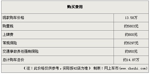 以1.6豪华天窗版为例,目前售价为13.58万,全包价格大约 如下: