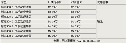 东风标致408只有展车 郑州提车需等1个月