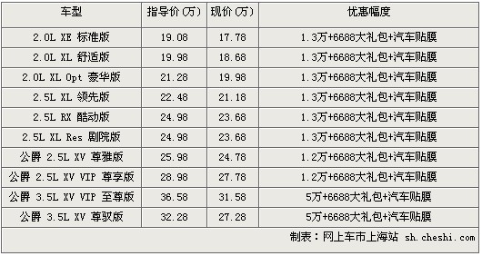 此稿件来自上海综合经销商,3日内有效,不代表厂方和4S店行为。