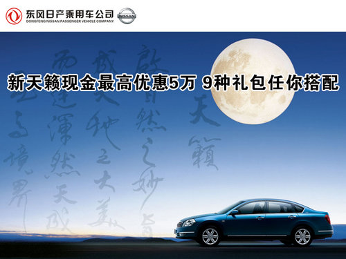 新天籁现金最高优惠5万 9种礼包任你搭配
