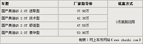 国产奥迪Q5 3月底到达沈阳 37.98万元起售