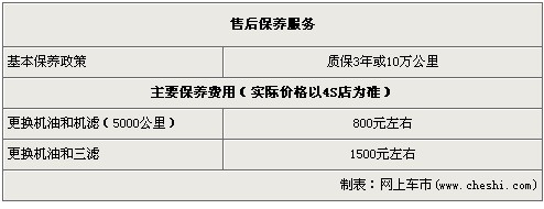 保养方面,进口标致308CC是三年10万公里的质保,小保养(更换机油机滤等)的价为800元左右,大保养根据车况而定,更换三滤的费用在1500元左右,在该级别车型中其保养费用较为适中。