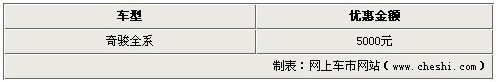 奇骏无论是外形还是动力都比较适合中国人城市运动的口味。奇骏其越野能力在同价位的城市SUV中算是比较突出的。近日,网上车市记者从东风日产新世纪专营店了解到,奇骏全系优惠5000元,部分车型有现车,具体车型售价见下表: