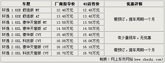 轩逸仅2.0车型有少量现车 购车无优惠