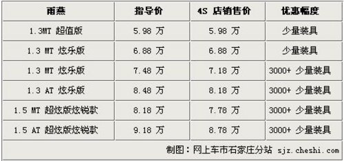 雨燕作为一款深受年轻族喜爱的时尚小车,在造型设计上具有独特的充满年轻活力的美学特征。本站记者由长安铃木天和专营店了解到,目前店内雨燕有部分现车,最高优惠4000元,还可获赠部分装具。具体详情请看下表: