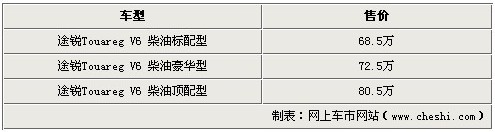 近日,网上车市记者从辽宁川达4s店了解到,首批进口大众途锐3.0TDI柴油版已经到店。喜爱这款车的朋友可以到店赏车、购车。具体车型售价见下表: