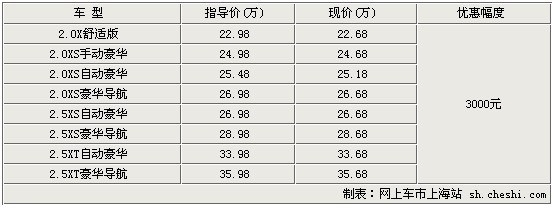 以上信息采集于上海经销商,不代表厂方行为,仅供购车参考。详请可查阅网上车市上海站会员经销商报价后台,告知对方信息来源于网上车市将有更多优惠。
