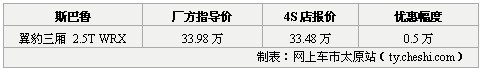 17款斯巴鲁翼豹清仓售 2.5T自动挡聚划算