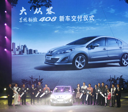 盛会进行到中间阶段,全场的近万名观众一同见证了东风标致408的惊艳亮相。巨幅LED背景屏幕缓缓打开,伴随着万人的欢呼声,全新的东风标致408从后台徐徐使出,惊艳全场。现场还举行了东风标致408的首车交付仪式。十位408的车主在活动现场从各专营店的总经理手中接过了新车的钥匙,成为全国第一批东风标致408的拥有者。