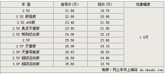 以上信息采集于上海经销商,不代表厂方行为,仅供购车参考。详请可查阅网上车市上海站会员经销商报价后台,告知对方信息来源于网上车市将有更多优惠。