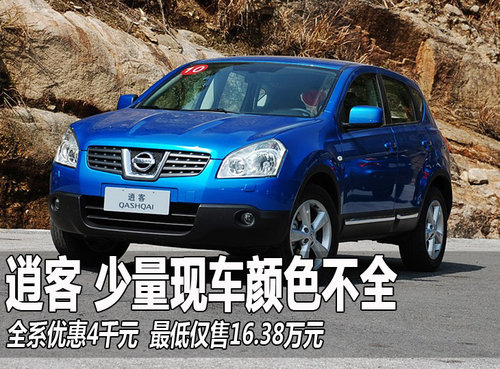 据东风日产4S店销售人员介绍:现在店内逍客全系均有少量现车,但现车颜色不全,部分颜色需提前预订,提车周期约一个月。近期购买逍客可享受到现金4千元的优惠,优惠后最低售价仅为16.38万元,较以往优惠幅度缩水了约2千元。对逍客感兴趣的朋友,不妨致电经销商咨询更多详情。