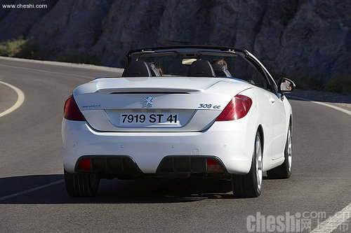 标致308CC继承了标致公司百年来积累的技术成果和设计理念,融多项世界汽车工业的顶尖技术于一身。圆滑的发动机罩线条、倾斜的前挡风玻璃,再加上可自动收合的硬顶,共同营造了一种完美不间断的流动感。从侧面看,从前轮拱起始的—条优雅的腰线,划过车身一直到尾灯,渐成上升趋势,与后轮拱保持运动的姿态。双门硬顶跑车与敞蓬车之间的整个转换过程不超过20秒(包括升起车窗玻璃的时间),甚至可以在车速达到10KM/H以上时进行这一操作。