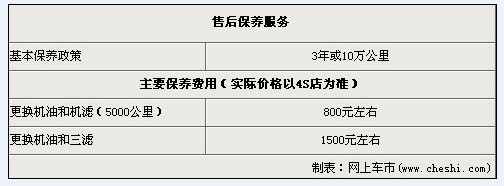 保养方面,进口标致308CC是三年10万公里的质保,小保养(更换机油机滤等)的价为800元左右,大保养根据车况而定,更换三滤的费用在1500元左右,在该级别车型中其保养费用较为适中。