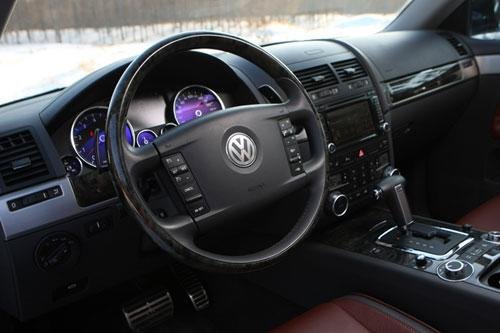途锐的内饰保持了德国车一贯的精致和严谨,均匀的缝隙和丝丝入扣的装配是大众汽车的一贯作风。秉承辉腾风格的内饰有着奢华的气息,真皮、实木和金属饰条配合得稳重又不失活泼。