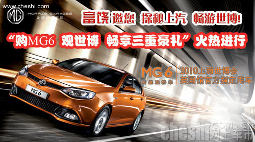 网上车市厦门讯: 从上汽MG厦门富饶4S店了解到,即日起至5月25日,凡购买新基准中级车MG6,即可获得购车豪礼,并有机会赢得免费上海世博游的额外惊喜。
