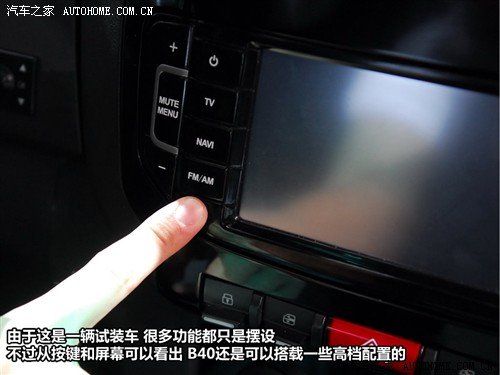 由于是试装车的缘故,我们没有太多的体验车载配置。不过从中控台上的屏幕不难看出北汽B40预计装备的配置比较高档,屏幕支持导航系统甚至还有车载电视。