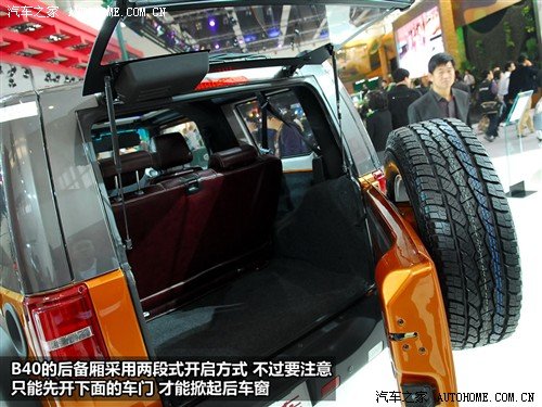 最后值得关注的是,北汽B40的后备厢采用两段式开启方式,先打开带备胎的车门,然后就可掀起后车窗。如果嫌后备厢的标准容积不够用,还可以放倒整个后排座椅,当然它只能整个放倒。不过放倒后椅背并非和底板在同一平面上,而且高低差较大,这样的效果并不是很令人满意。