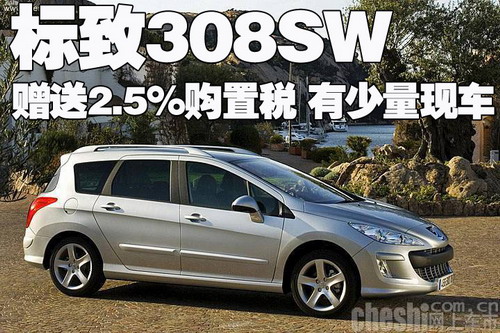 网上车市讯:作者走访位于机场路的明嘉进口标致4S店时获悉,跨界旅行车308SW目前店内有少量现车,现在购车可获赠2.5%购置税,同时还有其他好礼: